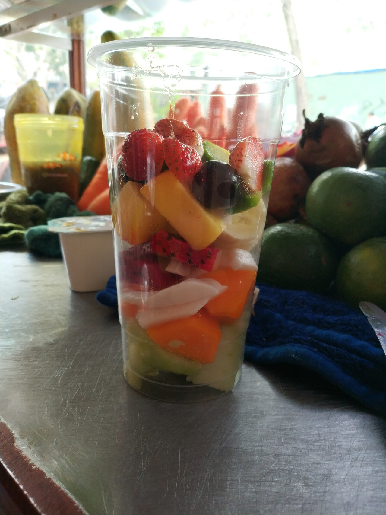 午後若是熱了,路邊一杯鋪滿草莓、火龍果與芒果的新鮮水果杯,就是最天然、最消暑的享受。