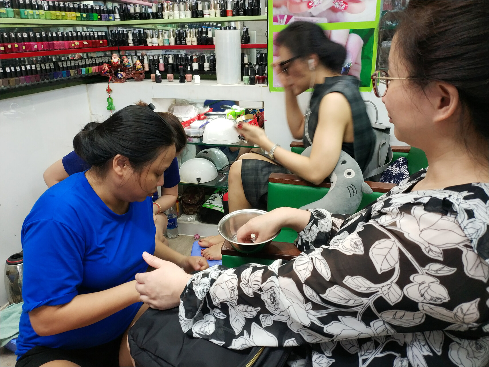 陪著太太去體驗了當地的美甲服務。胡志明市的美甲店非常專業,店內環境優雅且服務細膩,太太對成品非常滿意。